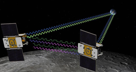 The GRAIL mission will place two spacecraft into the same orbit around the Moon. As they fly over areas of greater and lesser gravity, caused both by visible features such as mountains and craters and by masses hidden beneath the lunar surface, they will move slightly toward and away from each other. An instrument aboard each spacecraft will measure the changes in their relative velocity very precisely, and scientists will translate this information into a high-resolution map of the Moon's gravitational field.