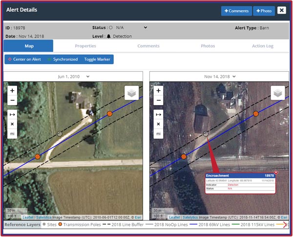 These corridors are usually inspected every few years. Rolling crews or using aircraft to examine the corridors is expensive and far too slow to catch early-stage construction.